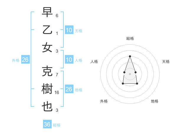 早乙女 克樹也さんを姓名の画数から五運を鑑定
