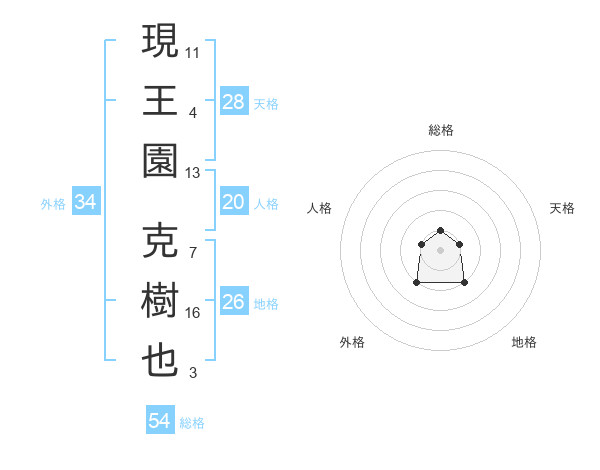 現王園 克樹也さんを姓名の画数から五運を鑑定