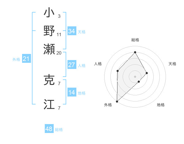小野瀬 克江さんを姓名の画数から五運を鑑定