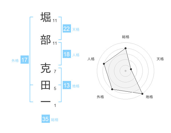 堀部 克田一さんを姓名の画数から五運を鑑定