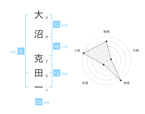 大沼 克田一さんを姓名の画数から五運を鑑定