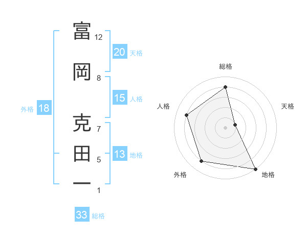 富岡 克田一さんを姓名の画数から五運を鑑定