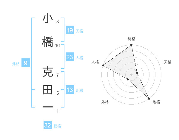 小橋 克田一さんの総格は32画の5点!
