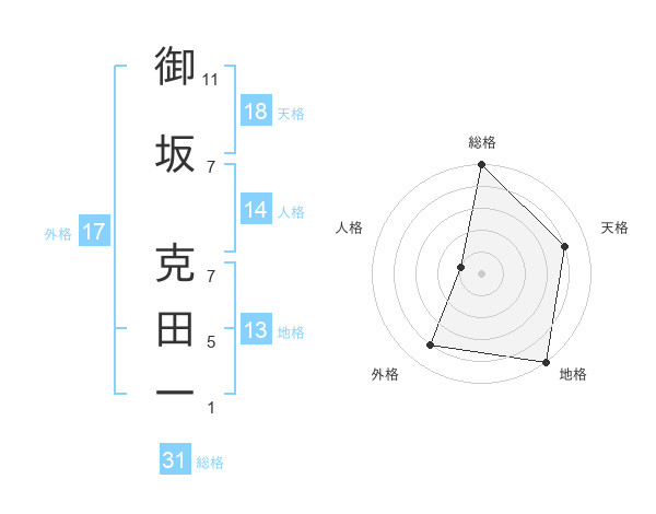 御坂 克田一さんの総格は31画の5点!