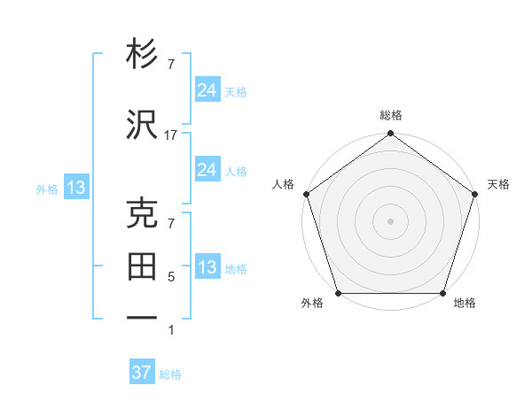 杉沢 克田一さんを姓名の画数から五運を鑑定