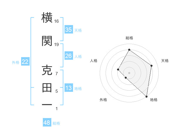 横関 克田一さんの地格は13画の5点!