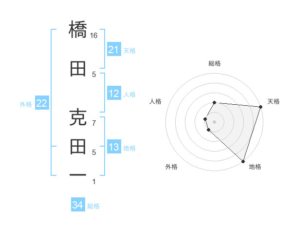 橋田 克田一さんの地格は13画の5点