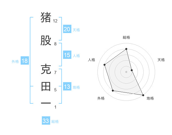 猪股 克田一さんを姓名の画数から五運を鑑定