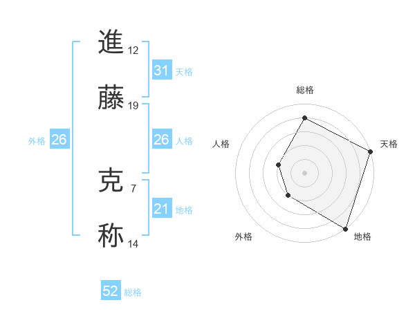 進藤 克称さんの総格は52画の4点!