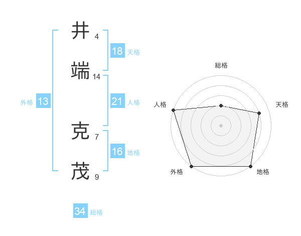 井端 克茂さんの総格は34画の2点!