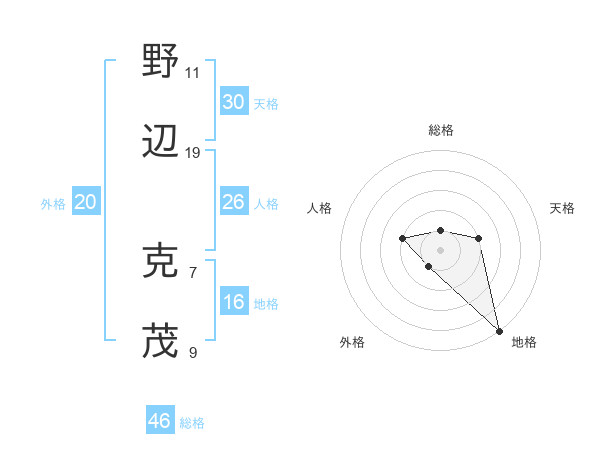 野辺 克茂さんの総格は46画の1点!