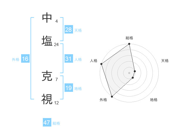 中塩 克視さんの総格は47画の5点!