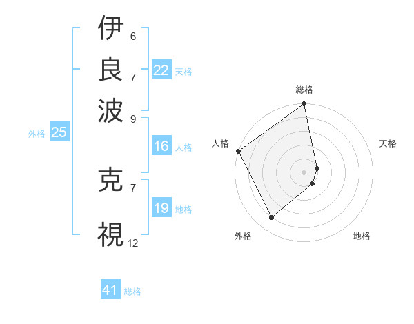 伊良波 克視さんの外格は25画の4点!