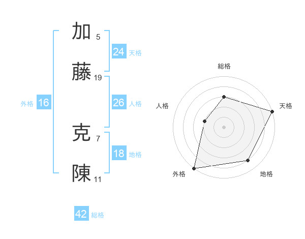 加藤 克陳さんの外格は16画の5点!
