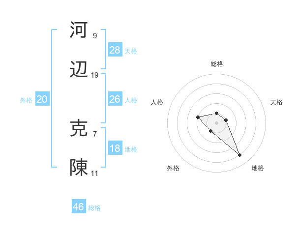 河辺 克陳さんの天格は28画の1点!