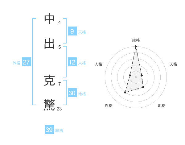 中出 克驚さんの総格は39画の5点!