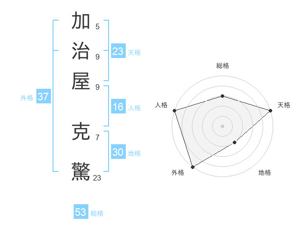加治屋 克驚さんを姓名の画数から五運を鑑定
