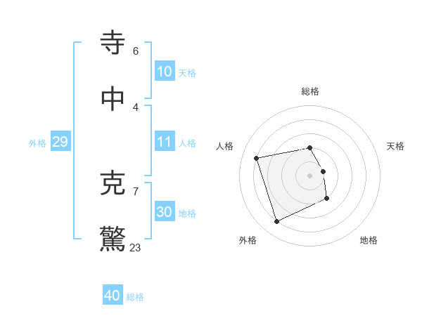 寺中 克驚さんの総格は40画の2点!