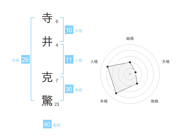 寺井 克驚さんの総格は40画の2点!