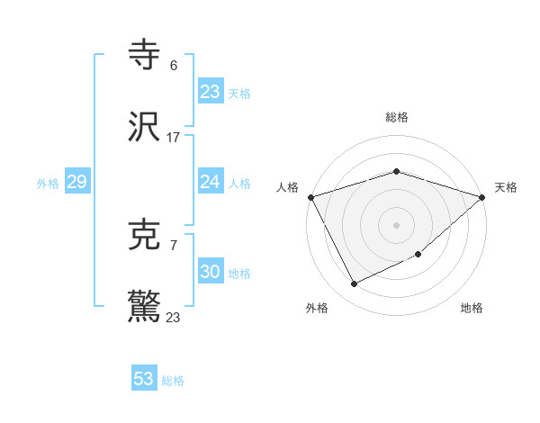 寺沢 克驚さんを姓名の画数から五運を鑑定