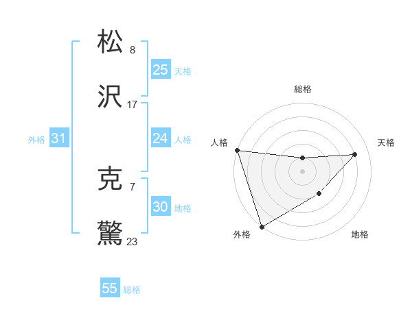 松沢 克驚さんを姓名の画数から五運を鑑定