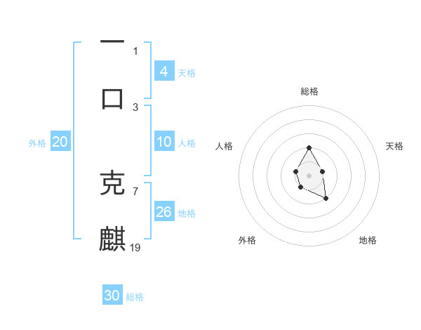 一口 克麒さんの総格は30画の2点!