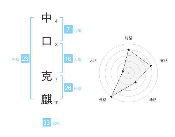 中口 克麒さんの天格は7画の4点!