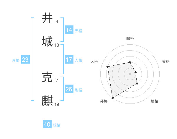 井城 克麒さんの外格は23画の5点!
