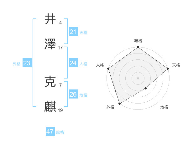 井澤 克麒さんの総格は47画の5点!