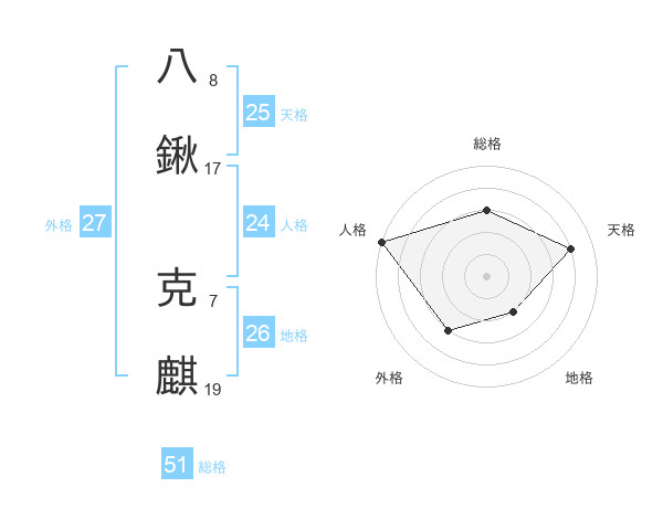 八鍬 克麒さんの総格は51画の3点!