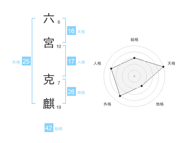 六宮 克麒さんの総格は42画の3点!