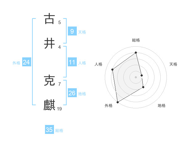 古井 克麒さんを姓名の画数から五運を鑑定