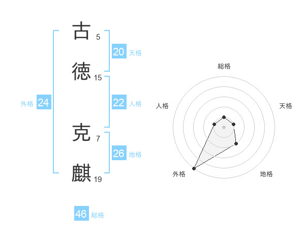 古徳 克麒さんの天格は20画の1点!
