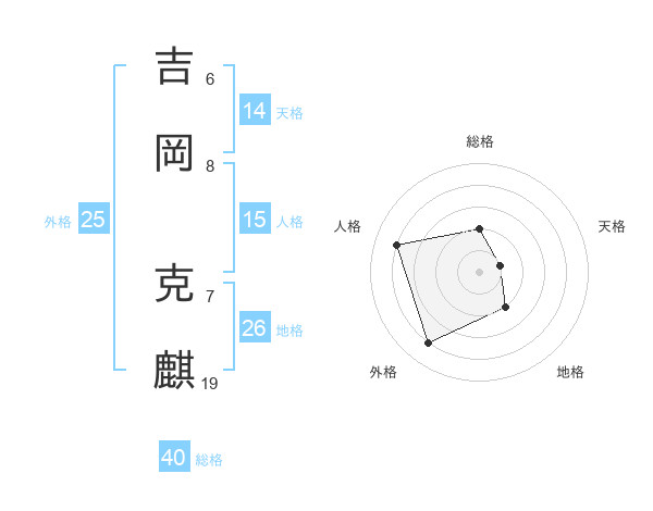 吉岡 克麒さんの天格は14画の1点!