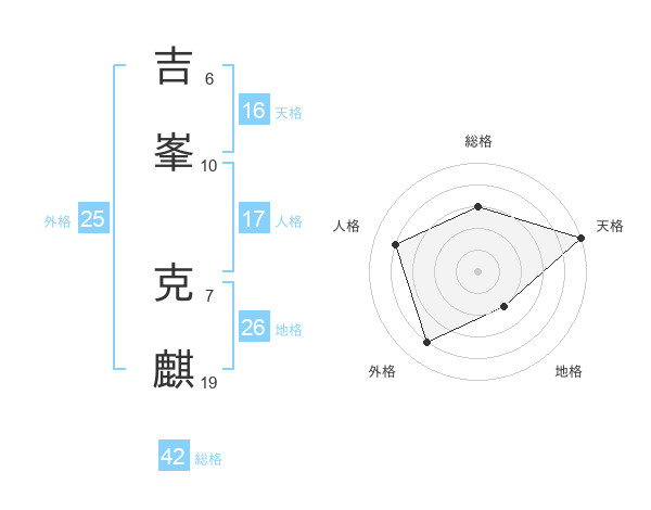 吉峯 克麒さんを姓名の画数から五運を鑑定
