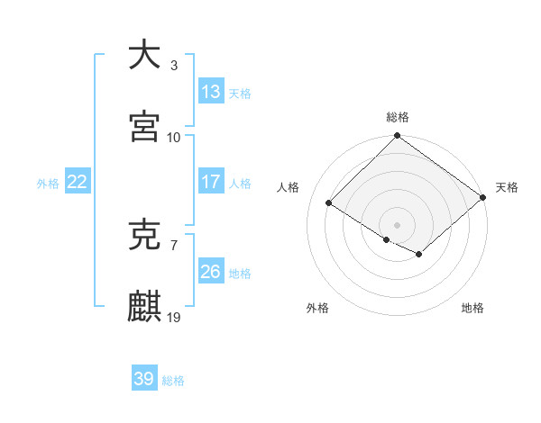 大宮 克麒さんを姓名の画数から五運を鑑定
