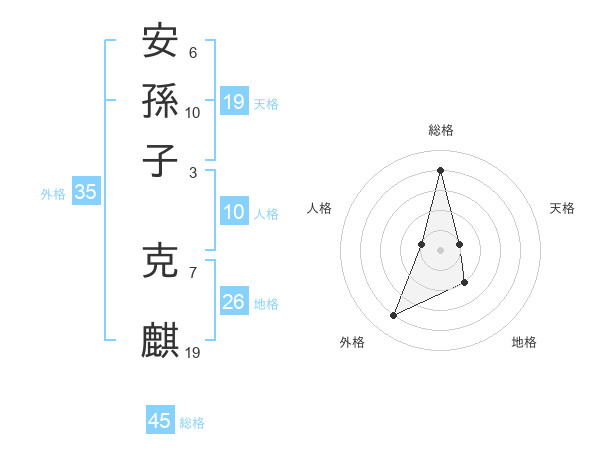 安孫子 克麒さんの総格は45画の4点!