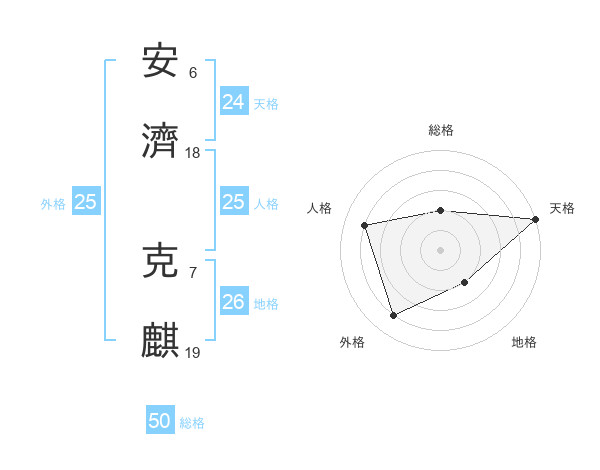 安濟 克麒さんの総格は50画の2点!