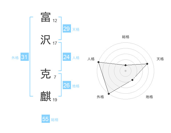 富沢 克麒さんを姓名の画数から五運を鑑定