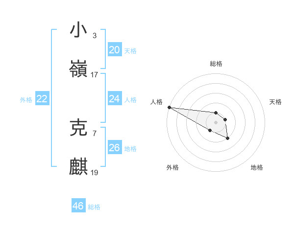 小嶺 克麒さんの天格は20画の1点!