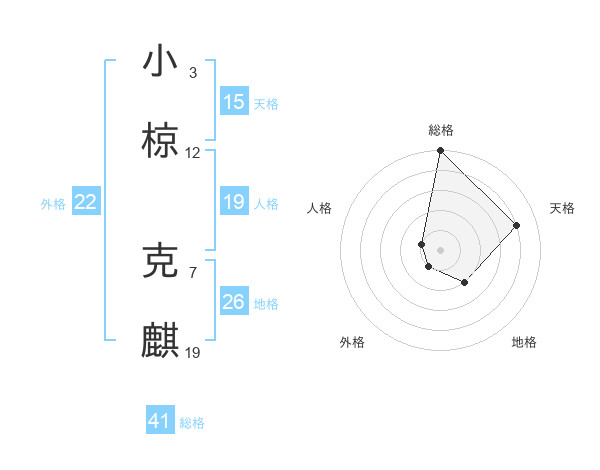 小椋 克麒さんの総格は41画の5点!