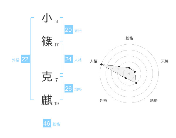 小篠 克麒さんの天格は20画の1点!