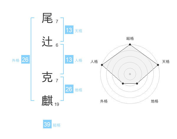 尾辻 克麒さんの天格は13画の5点!
