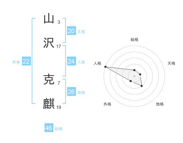 山沢 克麒さんの外格は22画の1点!