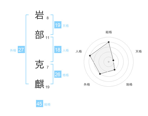 岩部 克麒さんの総格は45画の4点!
