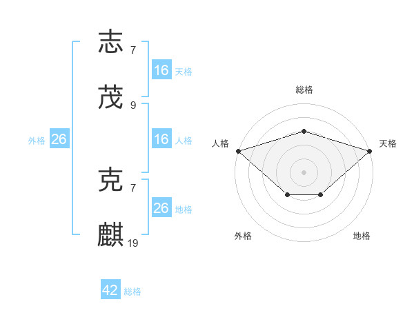 志茂 克麒さんの天格は16画の5点!