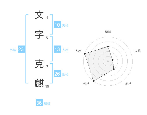 文字 克麒さんを姓名の画数から五運を鑑定