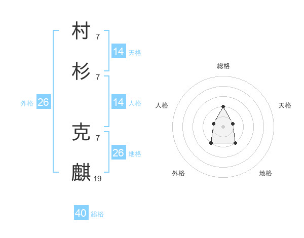 村杉 克麒さんを姓名の画数から五運を鑑定
