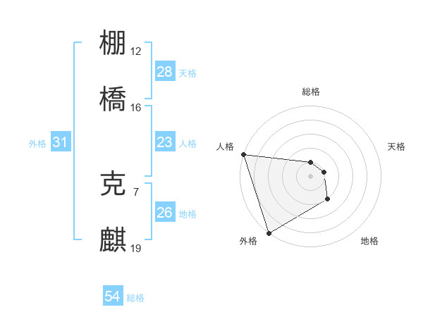 棚橋 克麒さんを姓名の画数から五運を鑑定