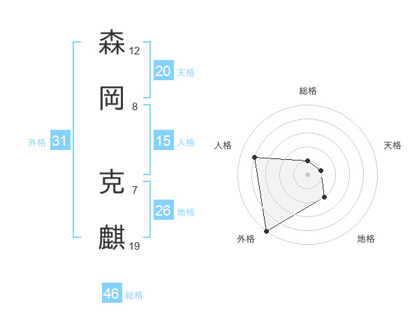 森岡 克麒さんを姓名の画数から五運を鑑定